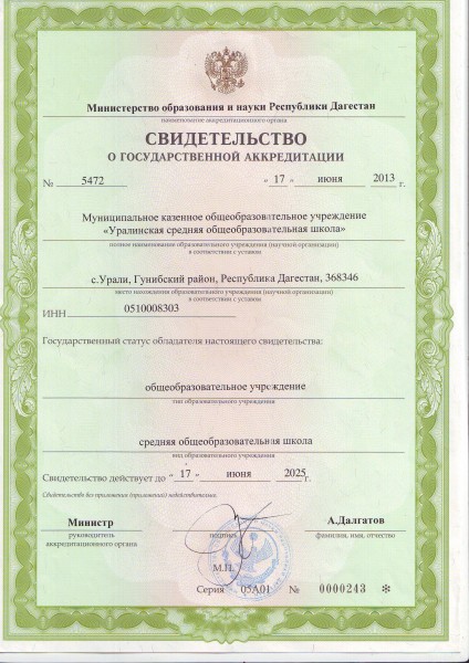 | Адрес местонахождения образовательной организации* | 368346, Республика Дагестан , Гунибский район, х.Урала |
